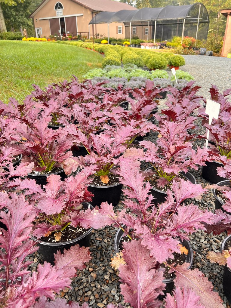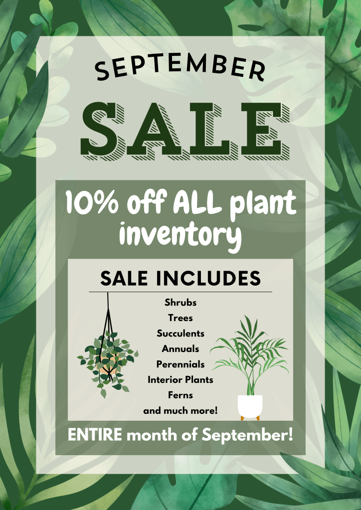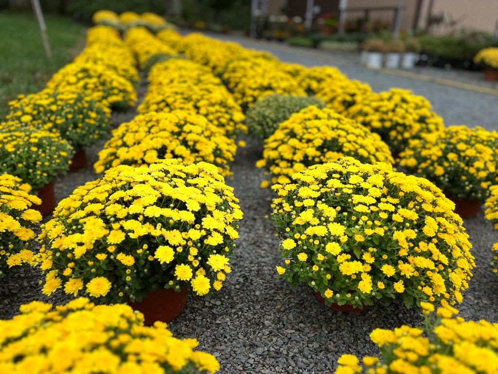 Happy Fall! Our fall selection of various sizes and colors of mums has arrived! Come stop by as we continue to get more fall plants in, like pansies, snapdragons, and fall veggies!