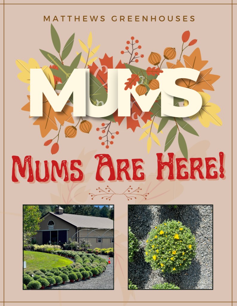Our Fall Mums are In! This is our only shipment of mums this fall, so come and get yours before they are gone! We will be getting more shipments of other fall flowers and plants regularly, so make sure to stay updated on our posts when stuff comes in!